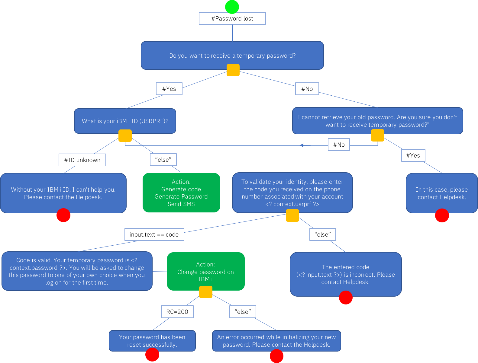 Let us look at a use case that uses one of the newer generation languages – Node.js to build an AI chatbot on the IBMi which lets users reset their own passwords .